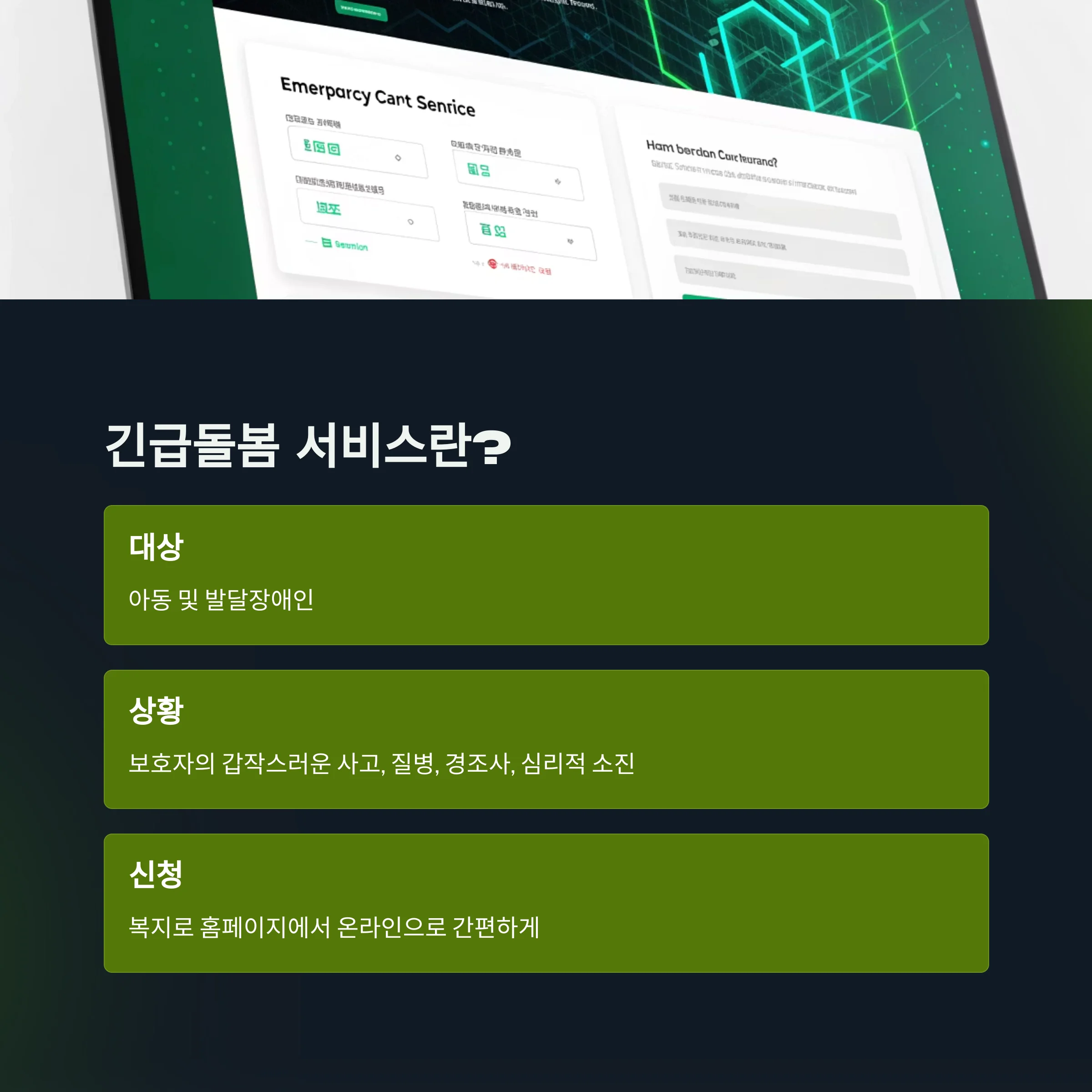 아동 및 발달장애인에게 긴급하게 돌봄을 제공하는 서비스입니다.