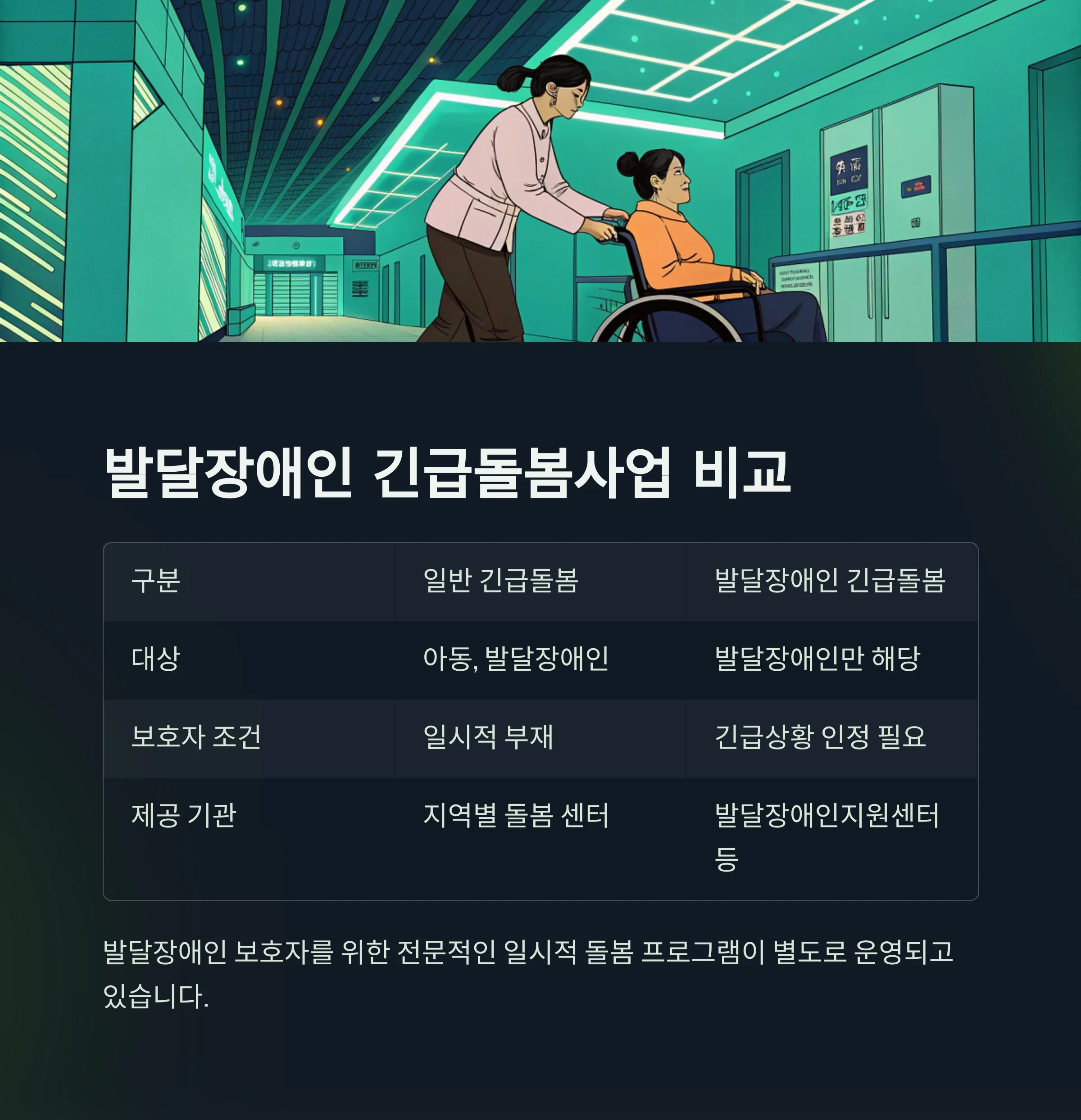 | 구분 | 일반 긴급돌봄 | 발달장애인 긴급돌봄 |