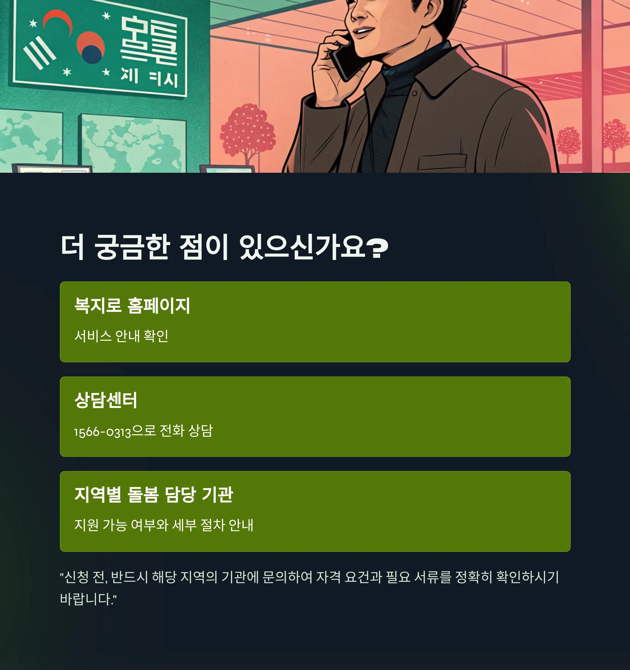 또한, 지역별 돌봄 담당 기관에 문의하시면