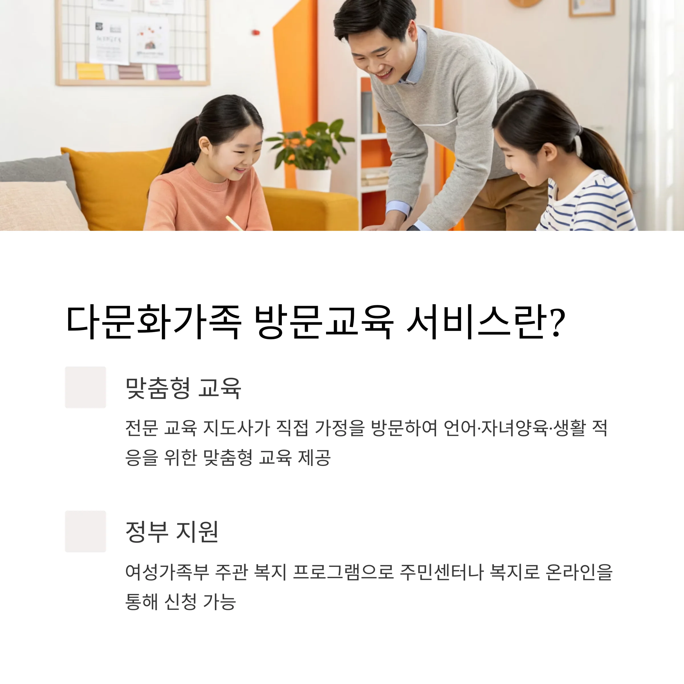 집으로 찾아가는 다문화가정 맞춤 교육, 방문교육 서비스 안내